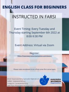 Register today by email: hazarawomenorganization@gmail.com or texting 647-917-9760